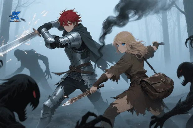 The Exiled Knight of Elderwood Part 9 -Kabut hutan mulai mereda, menyisakan bau besi dan asap hitam dari makhluk-makhluk bayangan yang baru saja dikalahkan. Zenith masih menggenggam pedangnya yang berat, napasnya memburu namun matanya tetap tenang. Di sampingnya, Lyanna terengah, bahunya sedikit gemetar karena luka kecil di lengannya, tapi tatapannya tetap tajam dan penuh tekad.